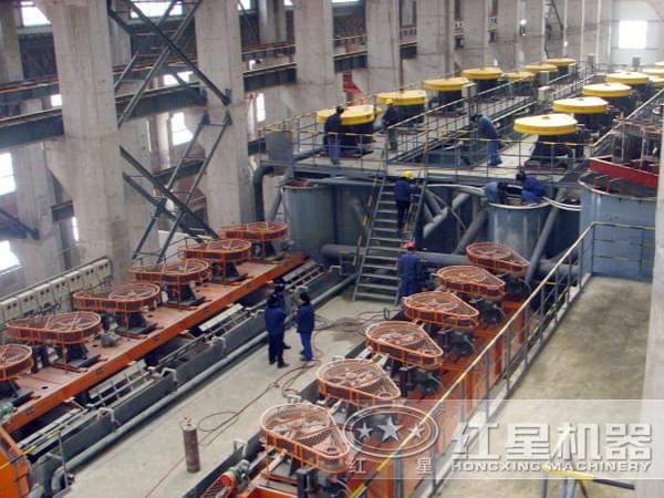 顎式破碎機(jī)進(jìn)行初步的破碎、球磨機(jī)進(jìn)行研磨加工、分級機(jī)進(jìn)行分選、磁選機(jī)分離其中的磁性物質(zhì)、浮選機(jī)配合藥劑進(jìn)行浮選、濃縮機(jī)濃縮,烘干機(jī)烘干等